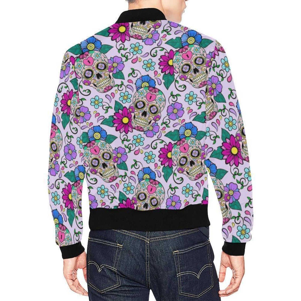 FUNSTUFFPRINT Sugar Skull Skeleton Girly Floral Pattern Print Mens 3D Bomber Jacket