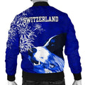 FUNSTUFFPRINT Switzerland Men's Bomber Jacket Bernese Mountain Dog and Edelweiss 3D Bomber Jacket