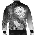 FUNSTUFFPRINT Tahiti Custom Personalised Men's Bomber Jacket - Humpback Whale with Tropical Flowers (White)- 3D Bomber Jacket
