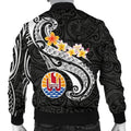 FUNSTUFFPRINT Tahiti Men's Bomber Jacket - Tahiti Seal Polynesian Patterns Plumeria (Black) - 3D Bomber Jacket