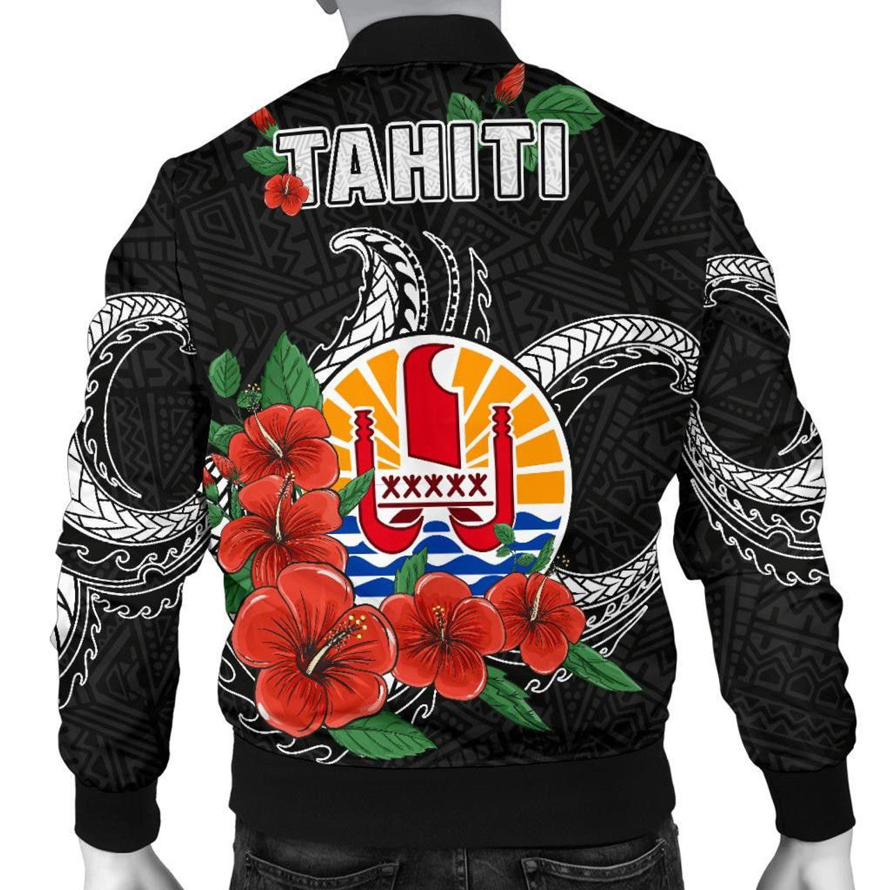 FUNSTUFFPRINT Tahiti Polynesian Men Bomber Jacket - Hibiscus Coat of Arm Black - 3D Bomber Jacket