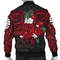 FUNSTUFFPRINT Tahiti Polynesian Men's Bomber Jacket - Hibiscus and Sea Turtle (Red) - 3D Bomber Jacket