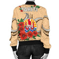 FUNSTUFFPRINT Tahiti Polynesian Women Bomber Jacket - Hibiscus Coat of Arm Beige - 3D Bomber Jacket