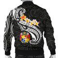 FUNSTUFFPRINT Tonga Men's Bomber Jacket - Tonga Seal Polynesian Patterns Plumeria (Black) - 3D Bomber Jacket