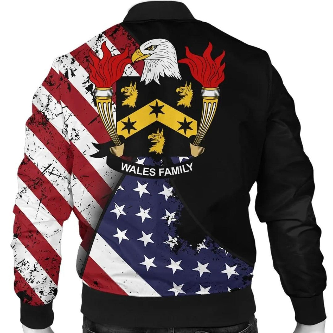 FUNSTUFFPRINT Wales USA Bomber Jacket - Special Grunge Flag - American Family Crest 3D Bomber Jacket