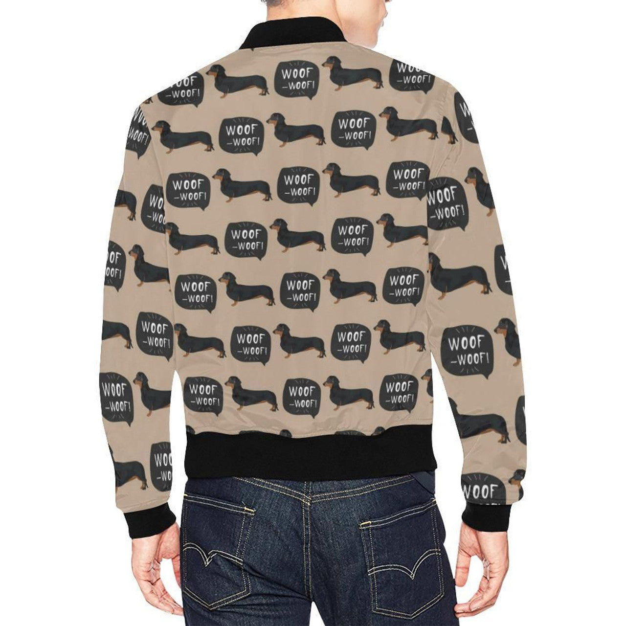 FUNSTUFFPRINT Wiener Dog Woof Woof Dachshund Pattern Print Mens 3D Bomber Jacket