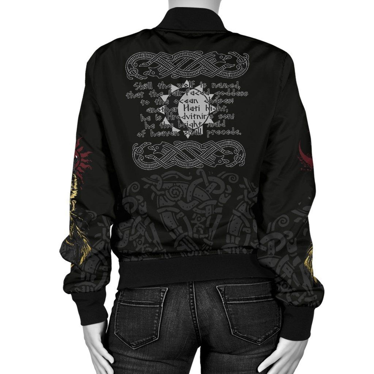 FUNSTUFFPRINT Women's Bomber Jacket The Wolves Skoll and Hati 3D Bomber Jacket