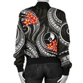 FUNSTUFFPRINT Yap Micronesian Women Bomber Jacket - Black Plumeria - 3D Bomber Jacket