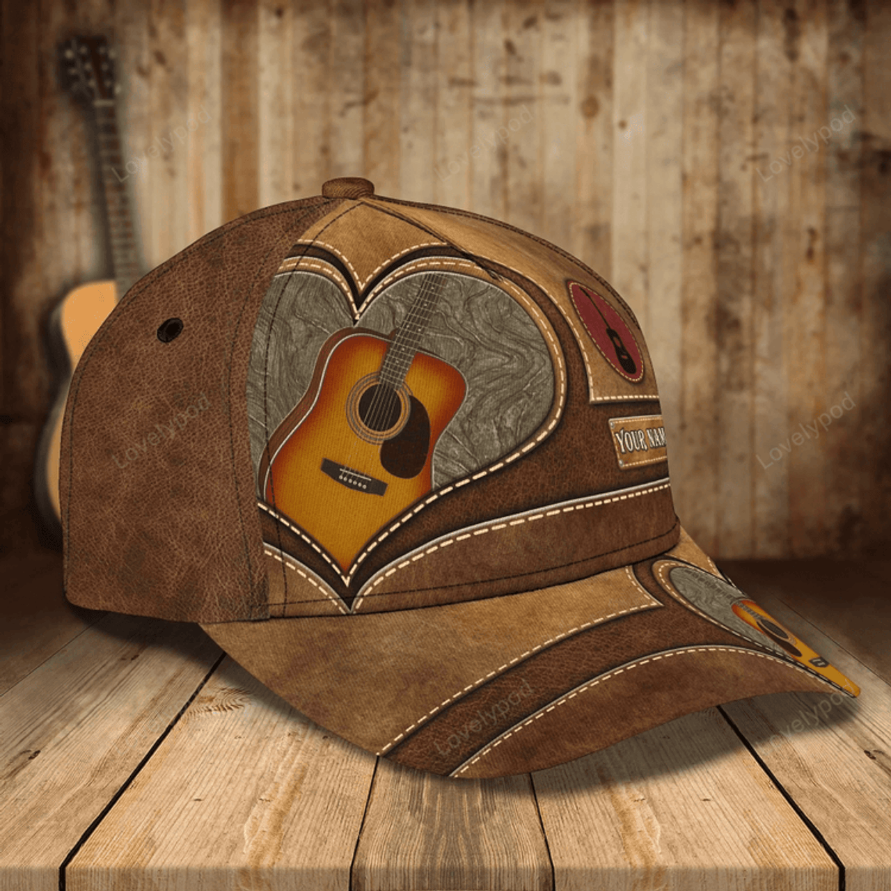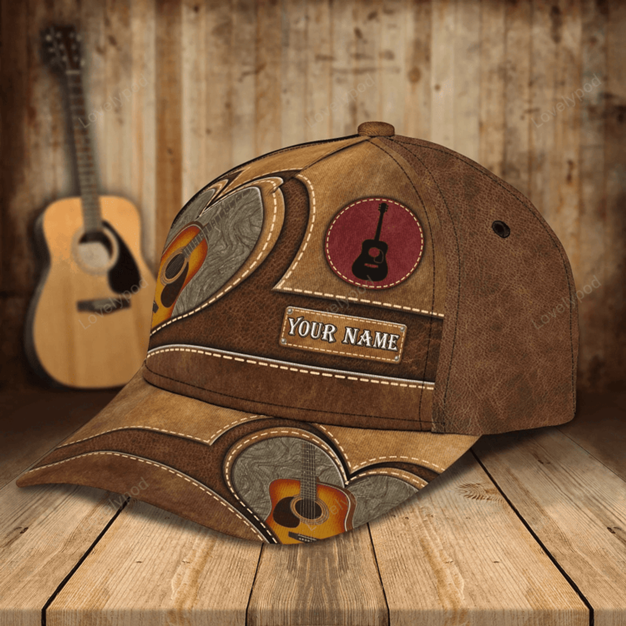 FUNSTUFFPRIT Baseball Guitar Cap Hat For Travel Summer, Guitar Cap Leather Brown Pattern, Best Gift To Guitarist