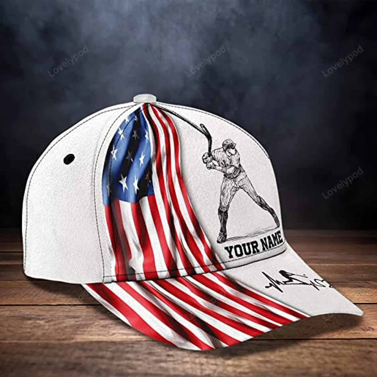 FUNSTUFFPRIT Cool Baseball Heartbeat Hat in an American Flag Design Mens Women's 3D classic cap