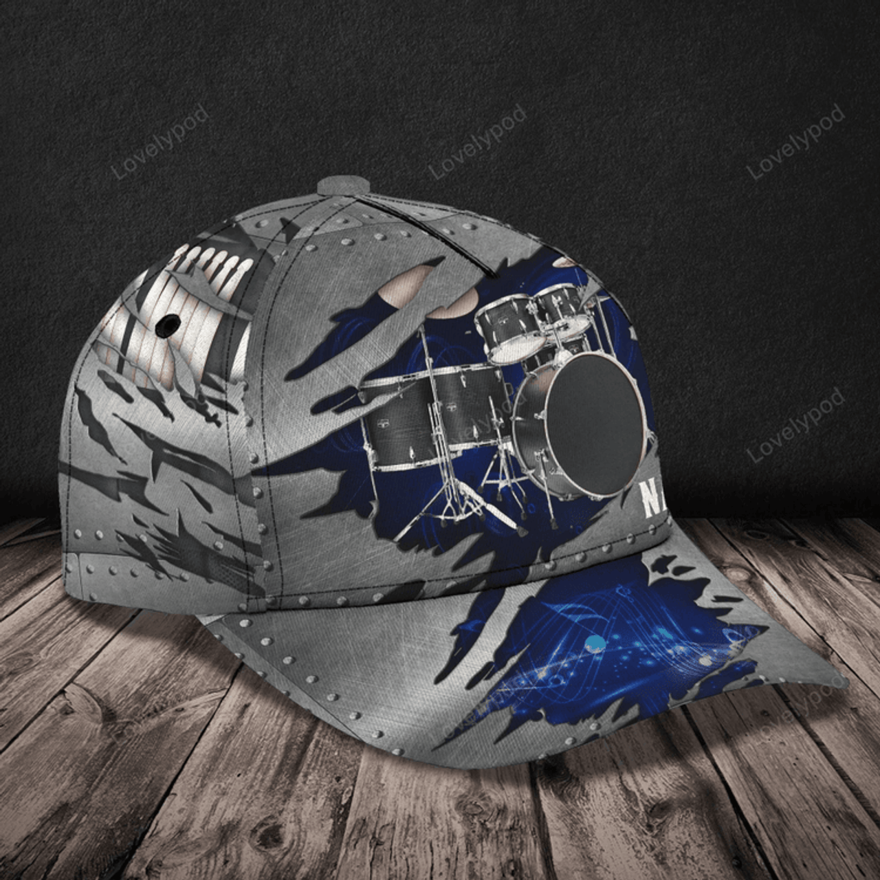 FUNSTUFFPRIT Cool Drum Classic Cap With Drummer Name, Present To Drum Lover, Drum Player Cap Hat For Travel Summer, Drum Cap