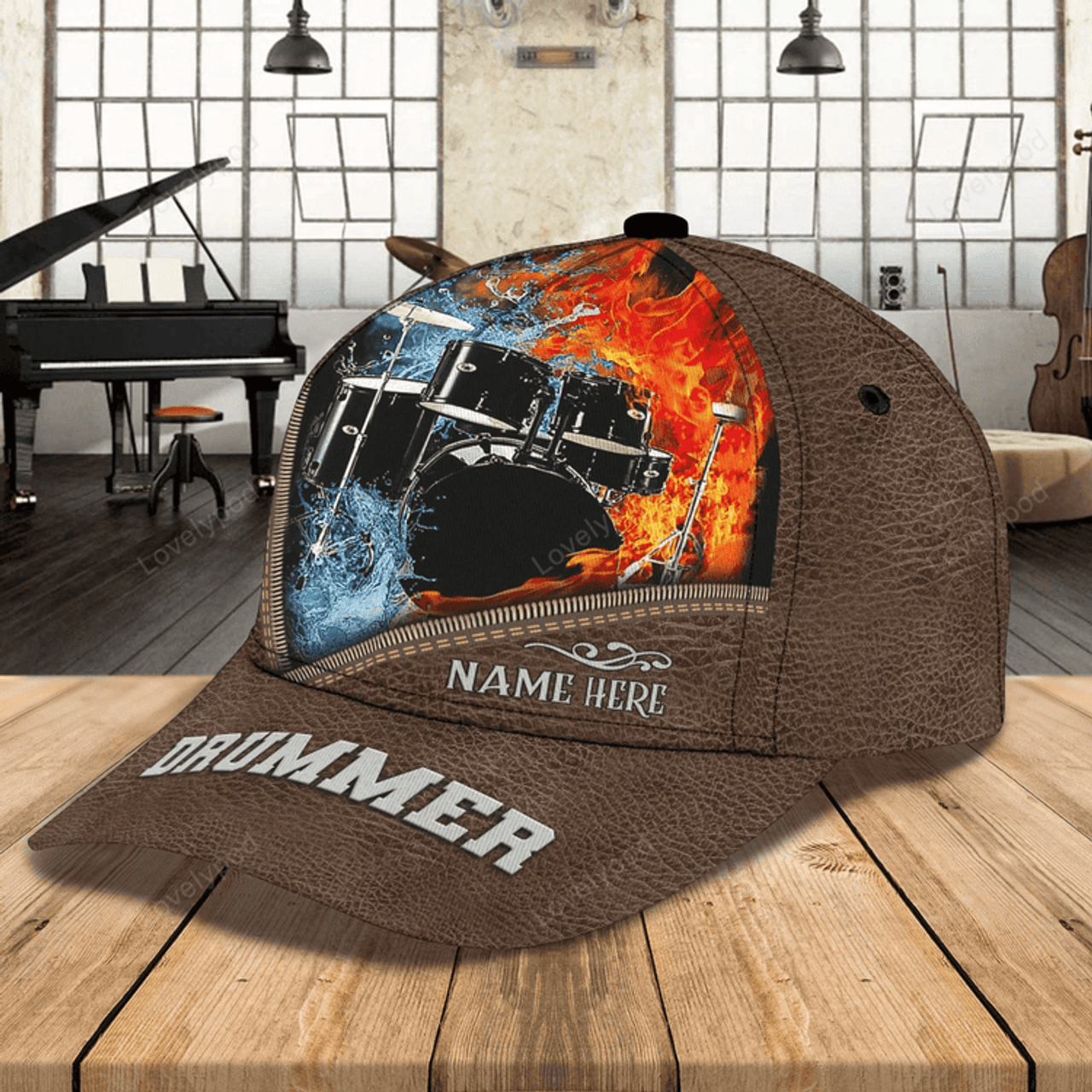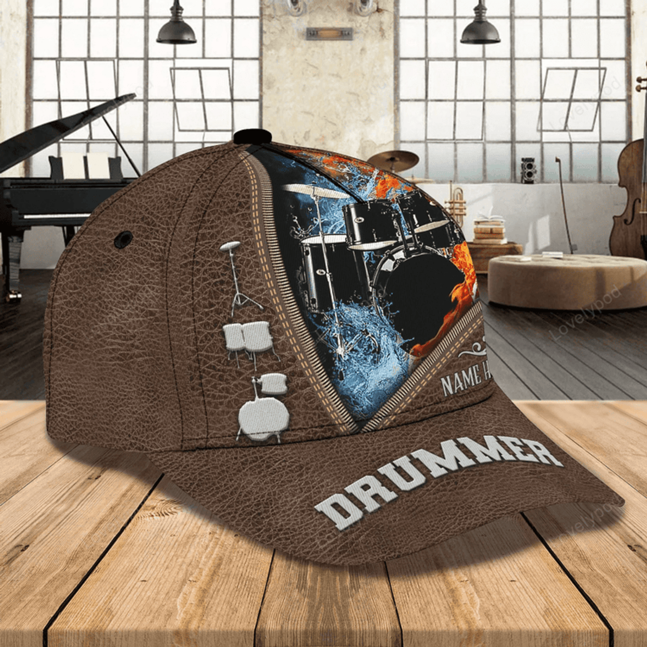 FUNSTUFFPRIT Cool Drum Classic Cap With Drummer Name, Present To Drum Lover, Drum Player Cap Hat For Travel Summer, Drum Cap