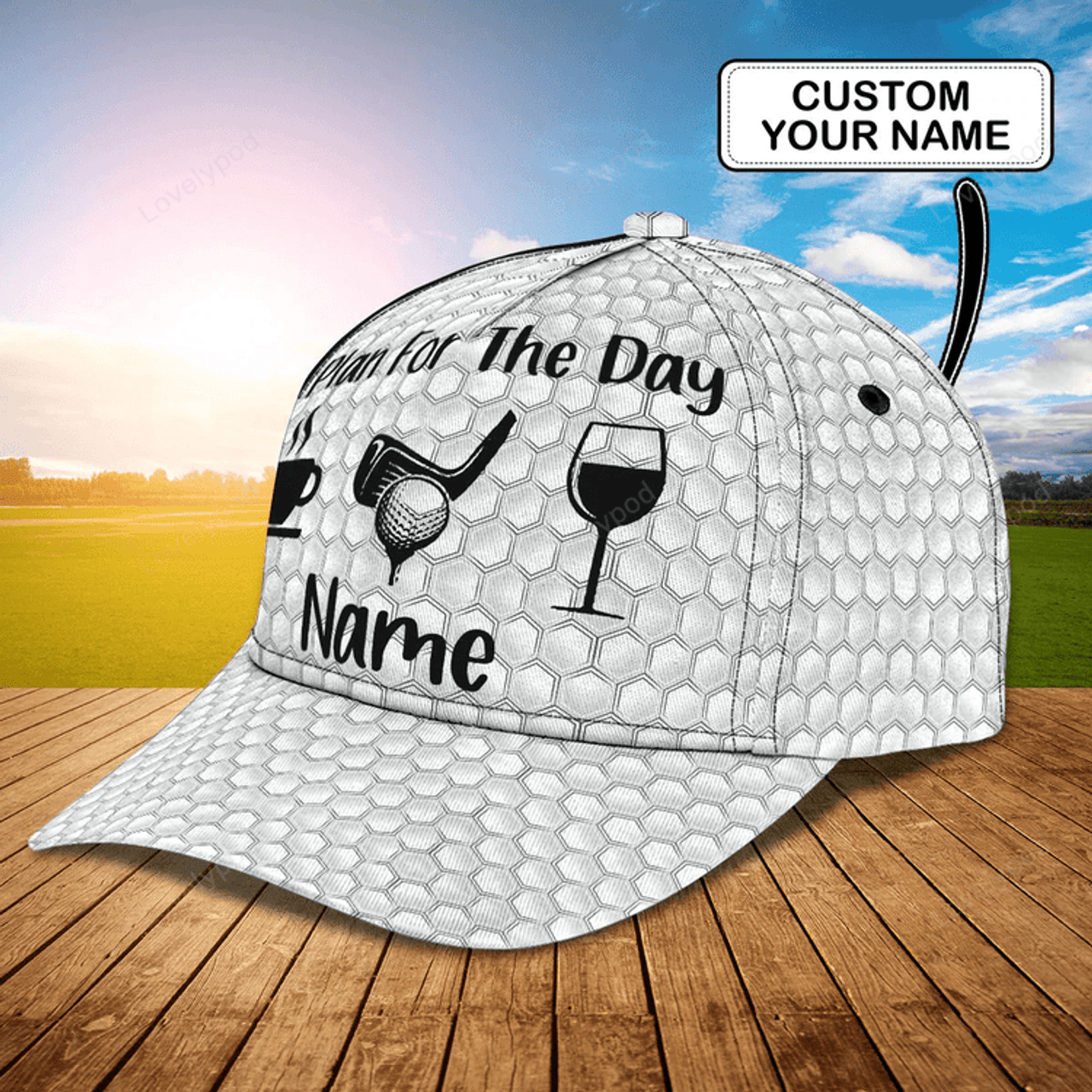 FUNSTUFFPRIT Custom With Name 3D Baseball Cap Hat For Golf Man, Plan For The Day With Golf, Gift A Golf Lover