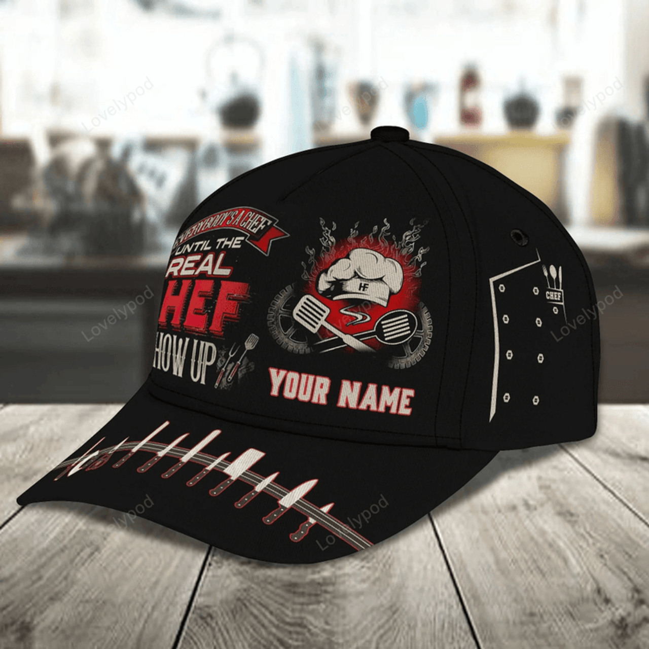 FUNSTUFFPRIT Custom With Name Chef Gear And Uniform Black Baseball Cap For Master Chef, Premium Quality Classic 3D Chef Cap
