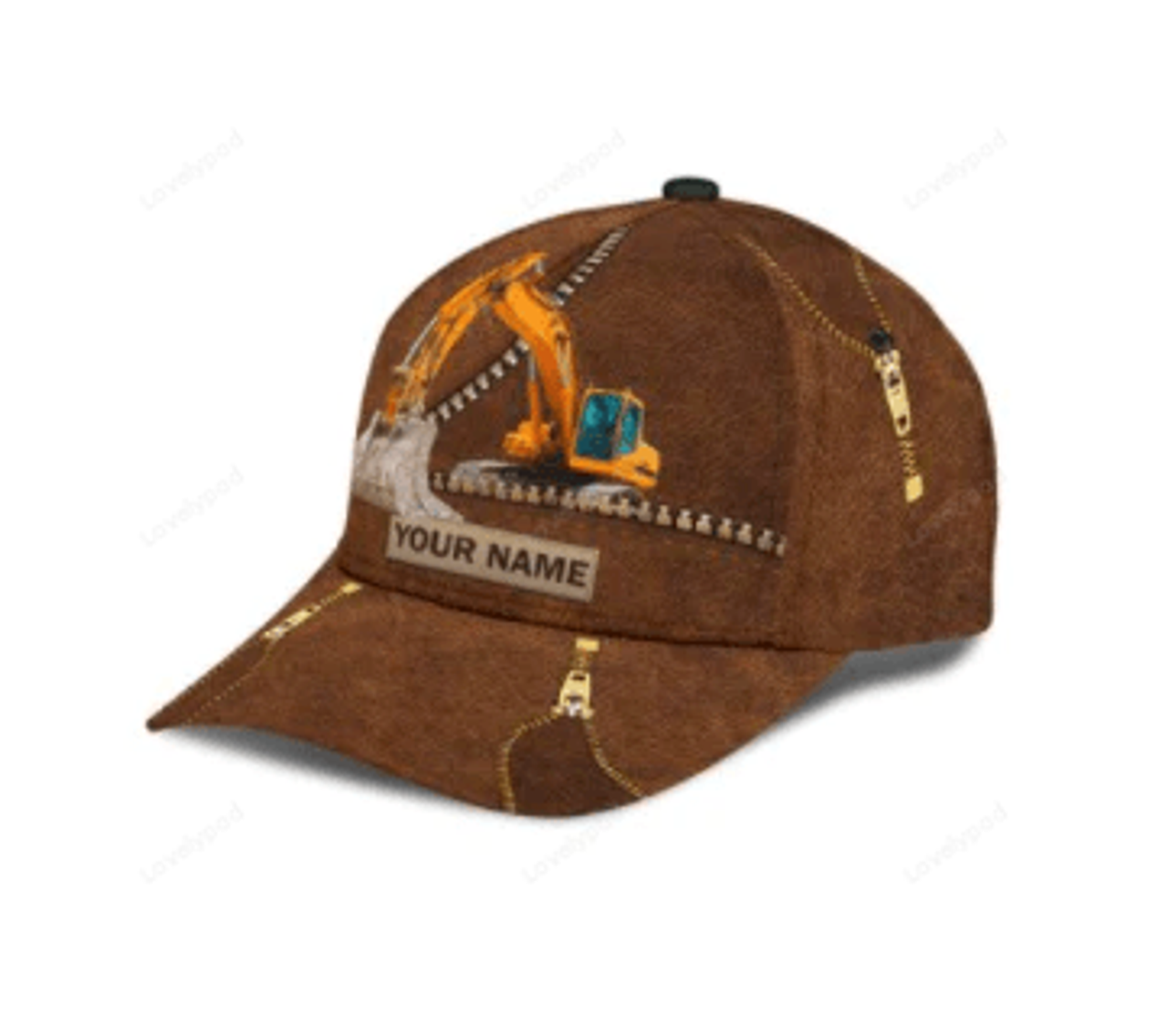 FUNSTUFFPRIT Custom With Name Classic Cap Hat For Excavator, Heavy Equipment 3D Cap Hat For Men