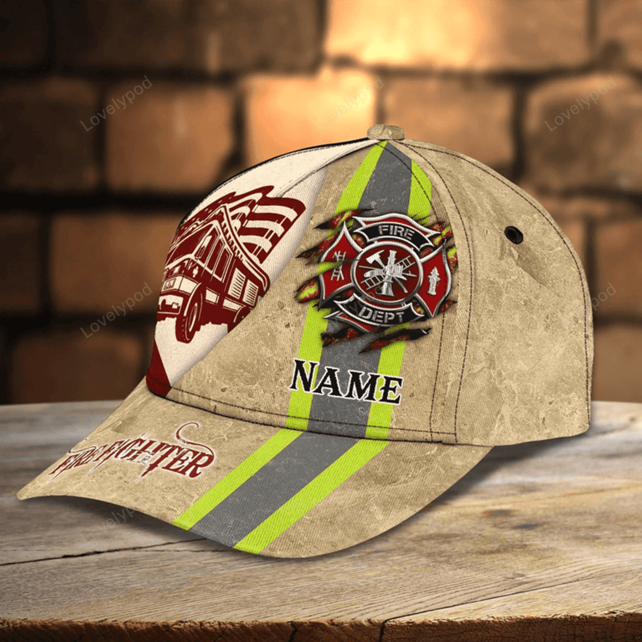 FUNSTUFFPRIT Custom With Name Fire Man Baseball Cap, Classic 3D Full Print Hat Cap For Firefighters