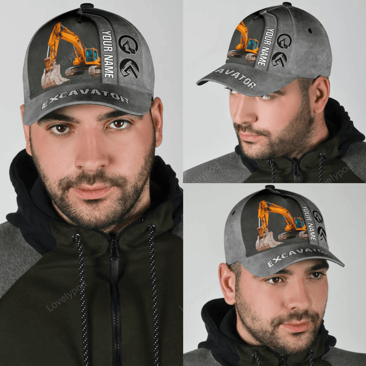 FUNSTUFFPRIT Customized Excavator Heavy Equipment Classic Cap Hat For Woker, Excavator 3D Baseball Hat Cap
