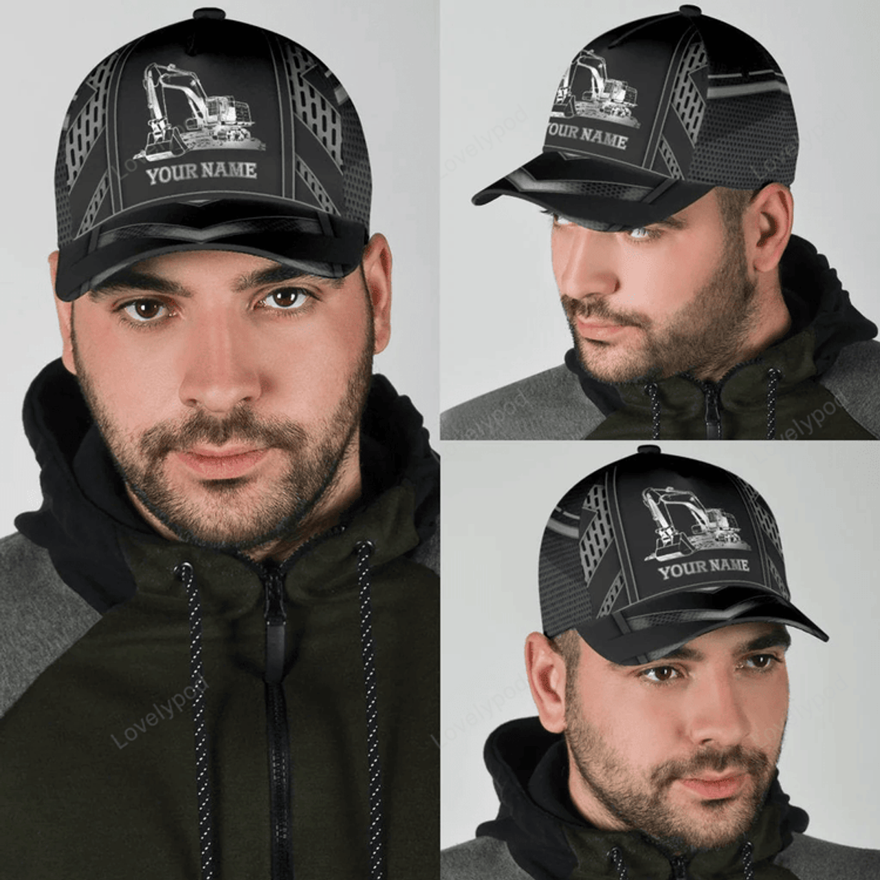 FUNSTUFFPRIT Personalized Excavator Heavy Equipment Cap Hat For Man And Women, Gift To Excavator Man, Excavator 3D Cap Hat