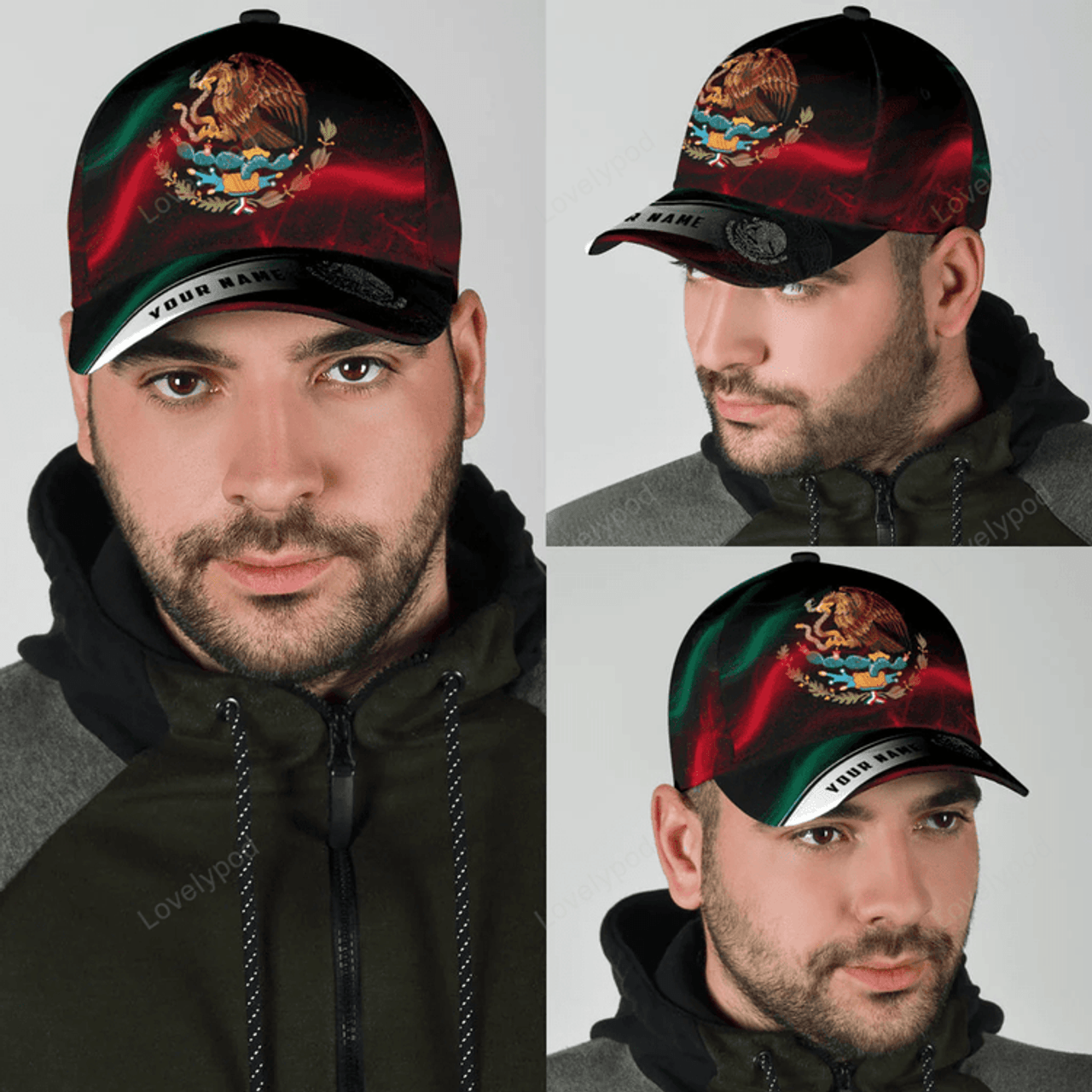 FUNSTUFFPRIT Personalized Mexico Smoke 3D Classic Cap, Baseball Hat For Mexican, Mexico Hat Cap