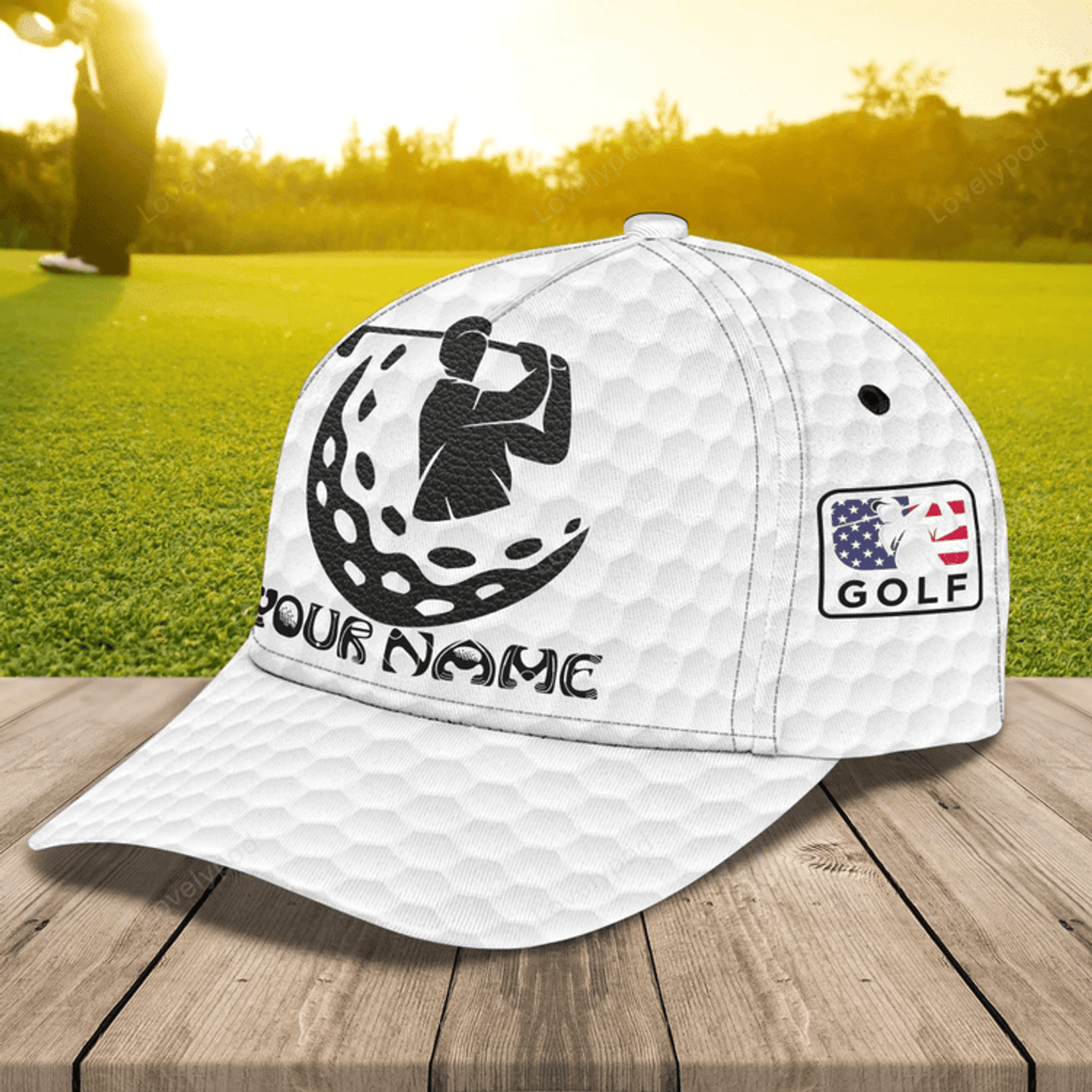 FUNSTUFFPRIT Personalized With Name 3D All Over Print Golf Caps For Men, American Golfer Baseball Cap, Golfer Gifts