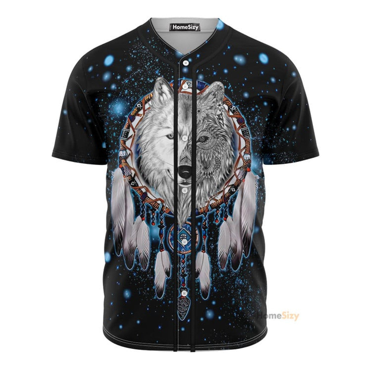 Galaxy Dreamcatcher Wolf Native American - Baseball Jersey