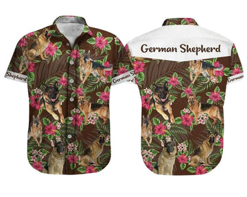 German Shepherd Dog Aloha Hawaiian Shirt - German Shepherd Pet Hawaiian Shirt, Hibiscus Tropical Hawaiian Shirt For Men & Women