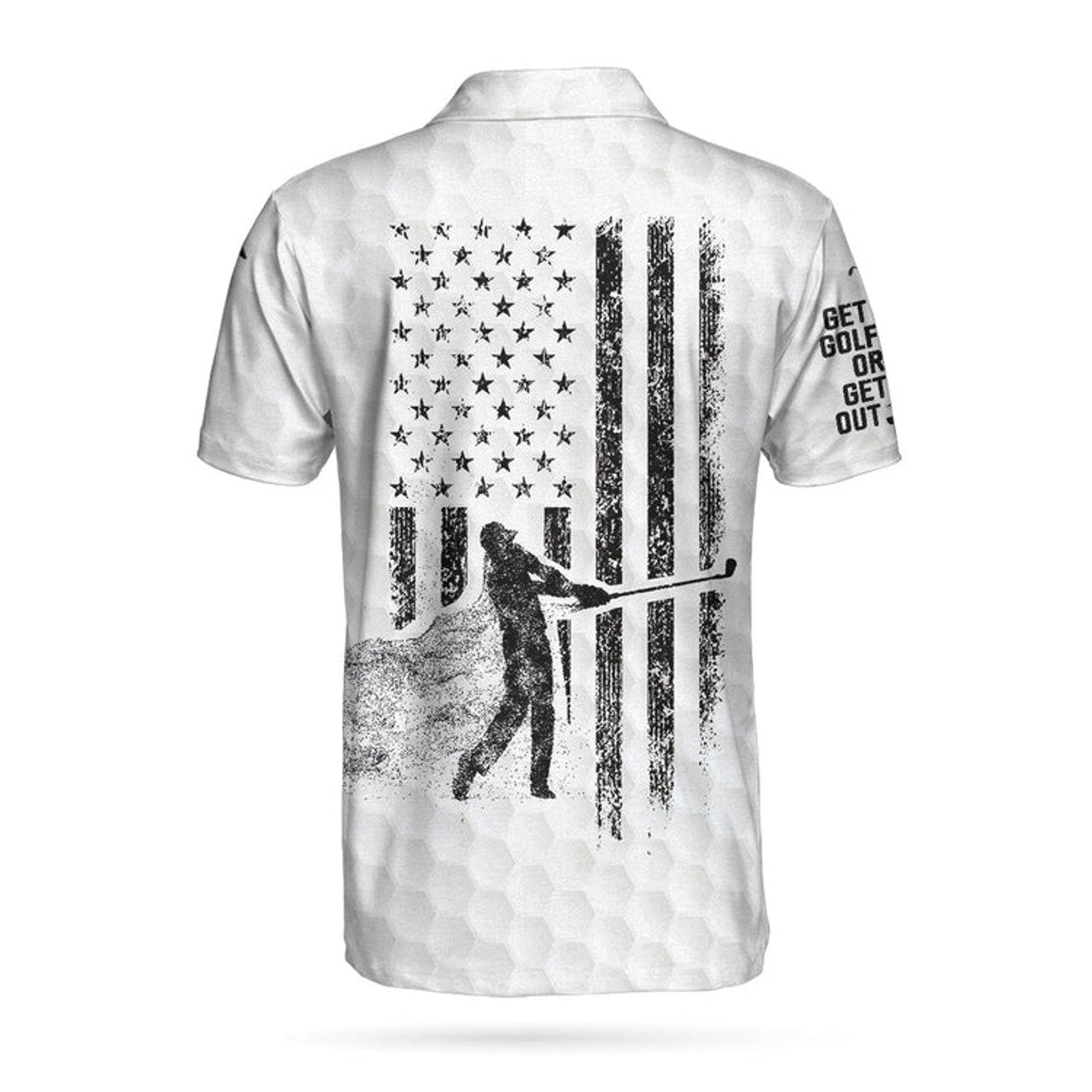 Get Golf Or Get Out, American Golfer Polo Shirt, German Black And White American Flag Golf Shirt For Men