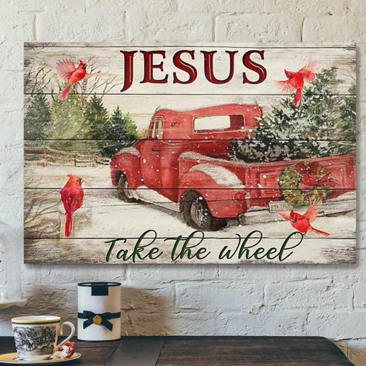 God Canvas Prints - Jesus Canvas Art - Jesus Take The Wheel Red Truck Cardinal