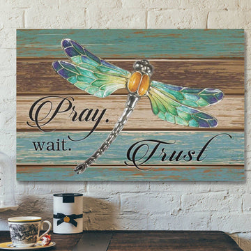 God Canvas Prints - Jesus Canvas Art - Pray Wait Trust Dragonfly Christian Wall Art Canvas