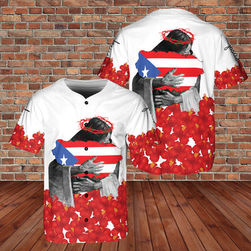 God Hubs Loves Puerto Rico Flag Hawaii Floral BaseBall Jersey Style 1