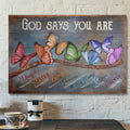 God Says You Are Amazing Butterfly Canvas Wall Art - Rustic Wood Background
