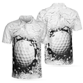 Golf Ball Breaking Polo Shirt, Black And White Cracking Pattern Polo Shirt, Best Golf Shirt For Men