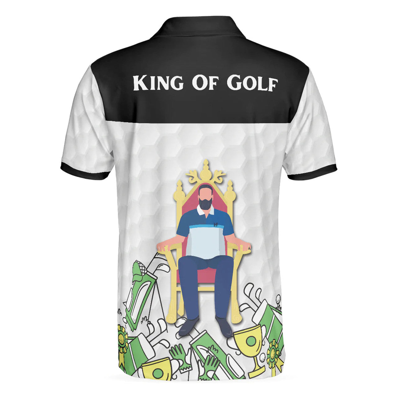Golf Ball Texture Golfer On Throne Men Polo Shirt, King Of Golf Black And White Polo Shirt For Men, Gift For Male Golfers