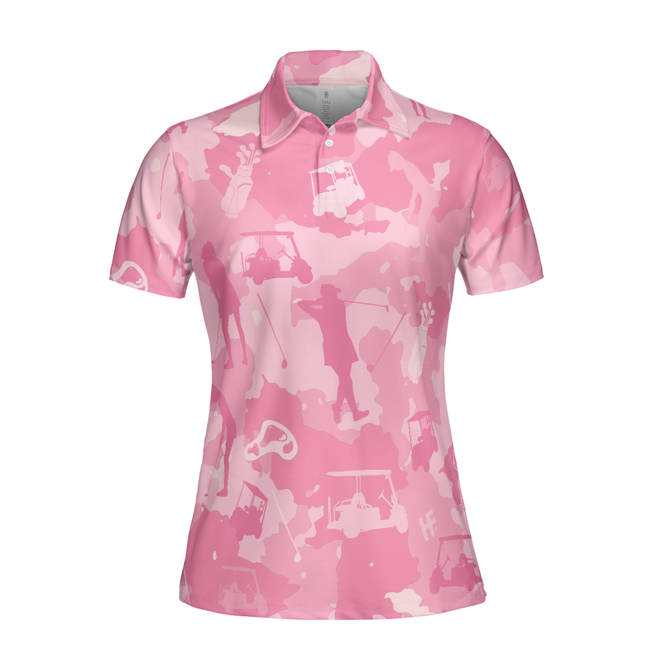 Golf Girl Camouflage V2 Short Sleeve Women Polo Shirt, Pink Camo Golf Shirt For Ladies, Cool Golf Gift For Women, Best Gift For Women Golfers