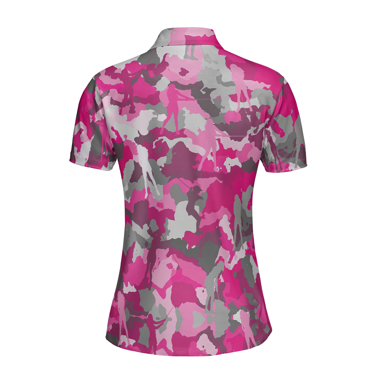 Golf Girl Pink Camouflage Pattern Short Sleeve Women Polo Shirt, Unique Female Golf Gift, Golf Gift For Ladies
