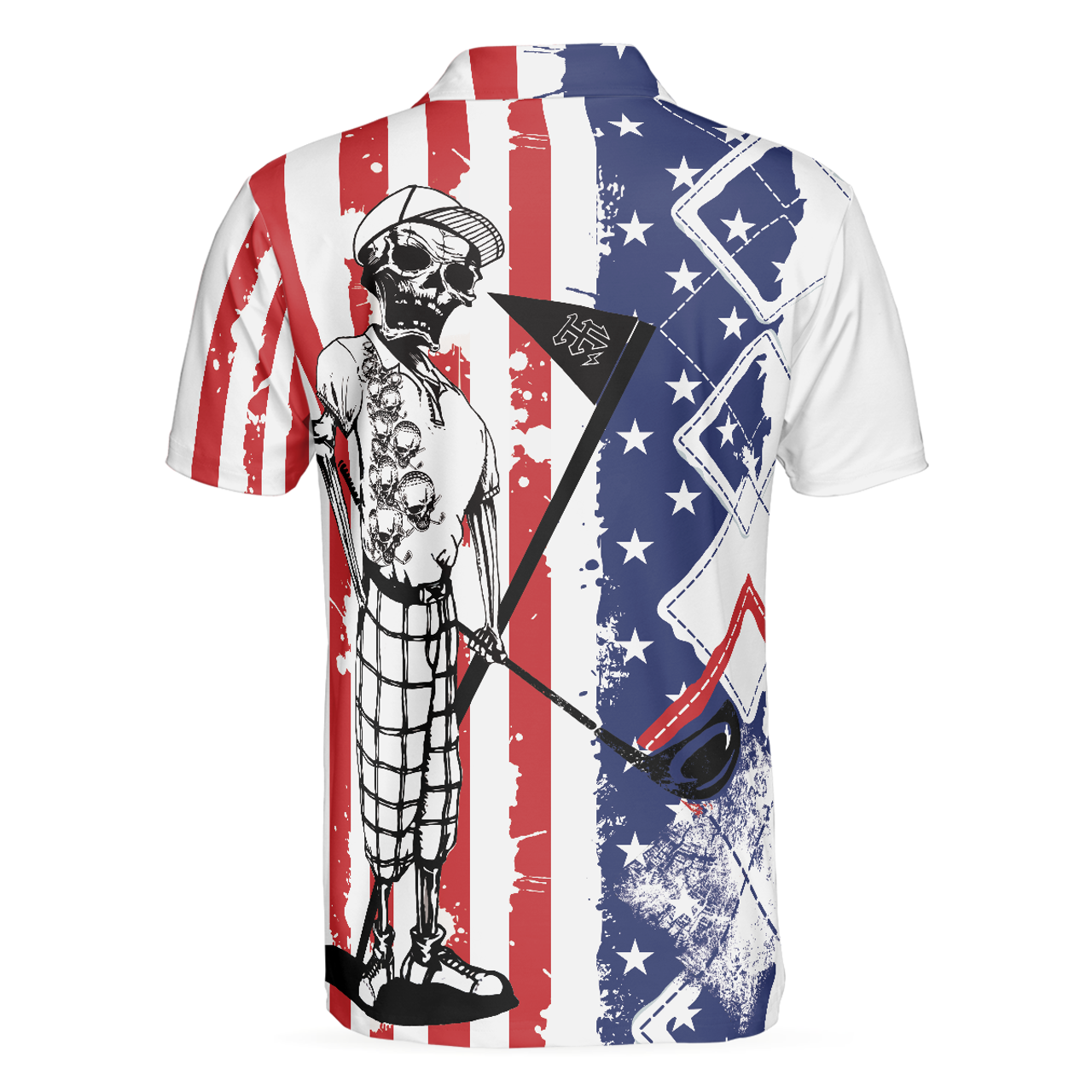 Golf I Like It Rough American Flag Polo Shirt, Argyle Pattern Skeleton Golfing Polo Shirt, Funny Golf Shirt For Men