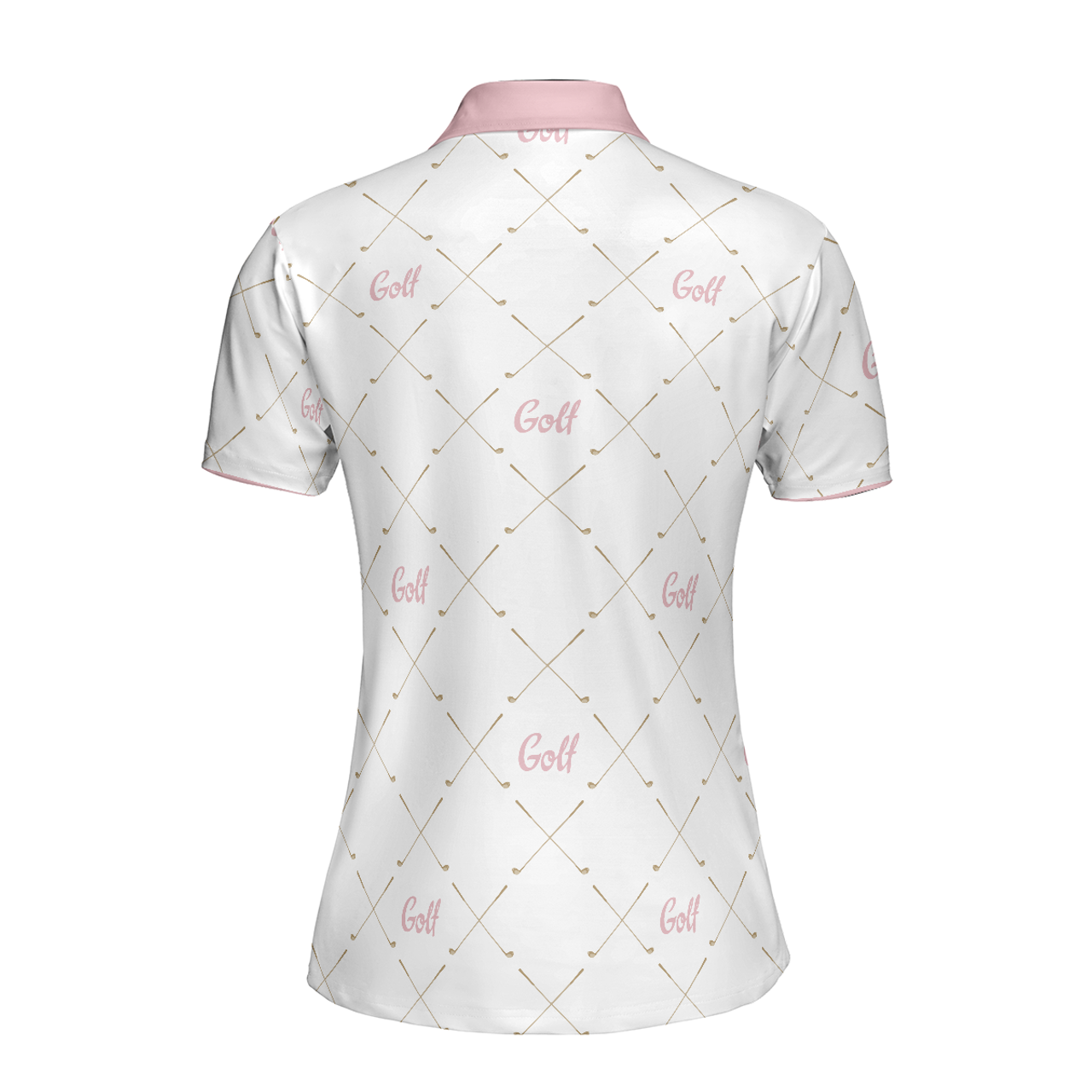 Golf In Pink With Simple Golf Clubs Pattern Short Sleeve Women Polo Shirt, Classic Golf Shirt For Ladies