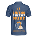 Golf Men Polo Shirt, Swing Swear Drink And Repeat Golf Polo Shirt, Blue And White Golf Polo Shirt, Funny Golf Shirt - Perfect Gift For Men, Golfers