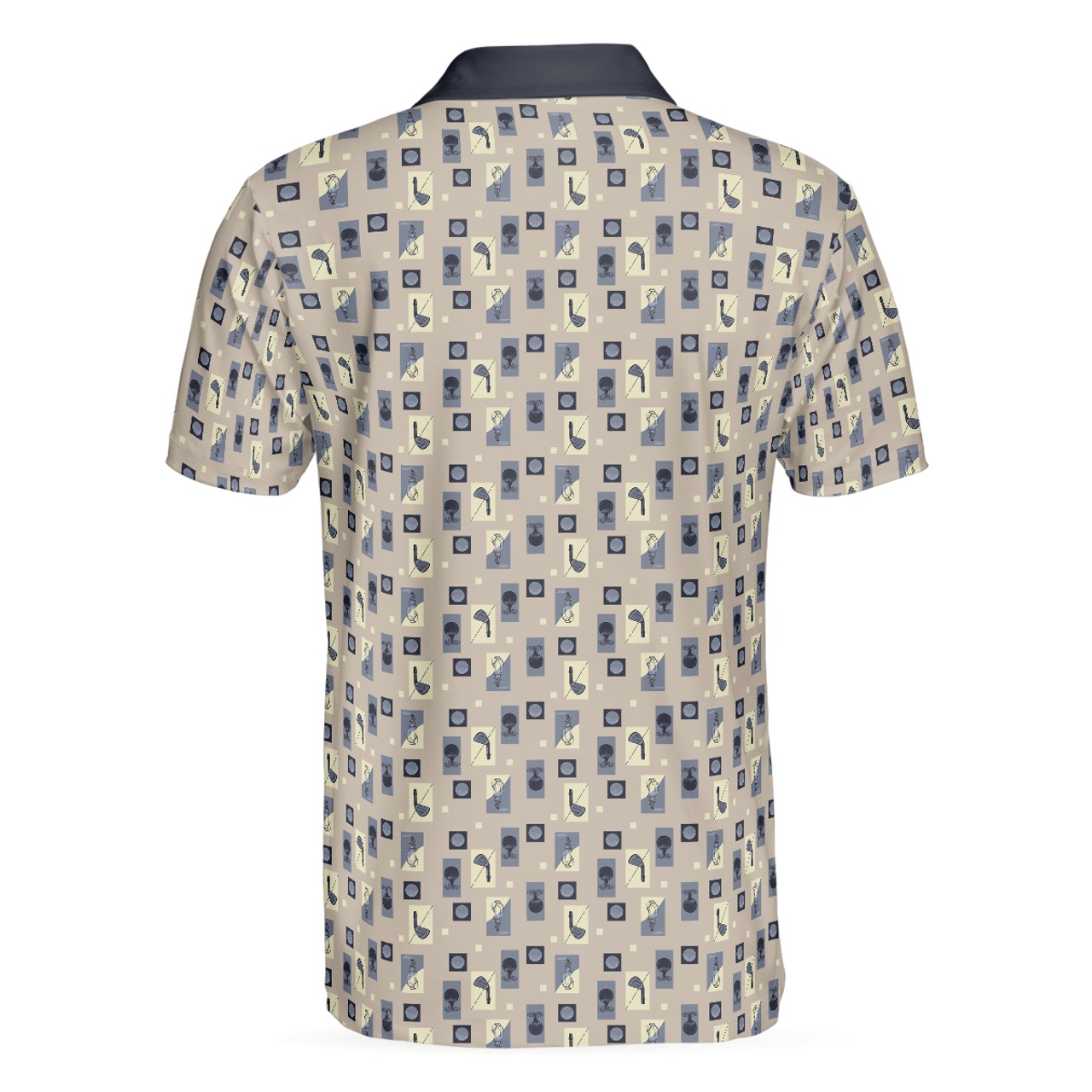 Golf Objects Pattern Short Sleeve Men Polo Shirt, Golf Tee And Club Polo Shirt, Best Golf Shirt For Men