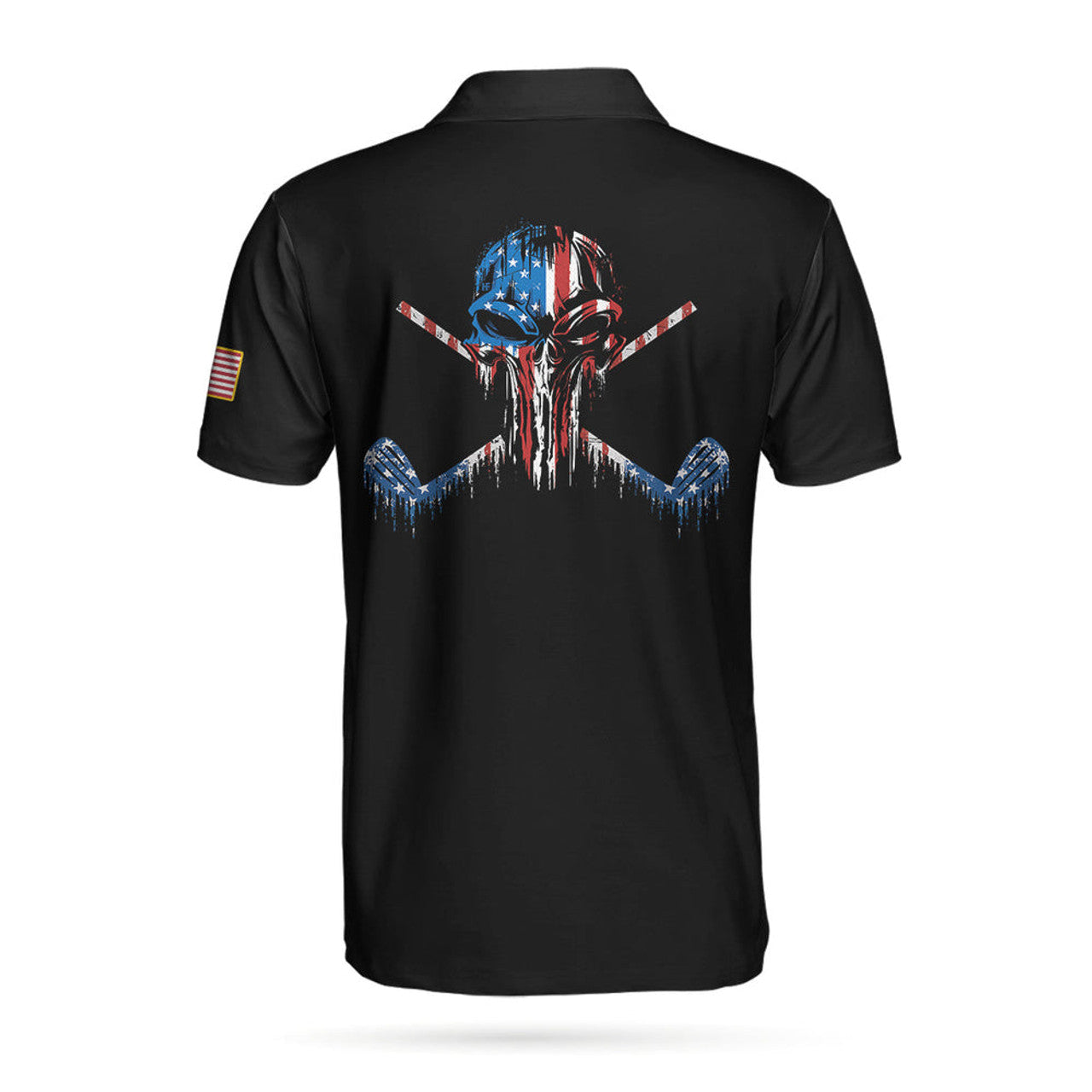 Golf Skull America Flag Short Sleeve Polo Shirt, Wet Paint Black Polo Shirt, Best Golf Shirt For Men