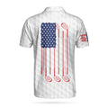 Golf Skull American Flag Short Sleeve Polo Shirt, White Golf Pattern Polo Shirt, Patriotic Golf Shirt For Men