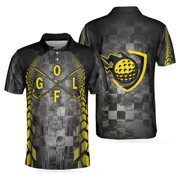 Golf Yellow Pattern Short Sleeve Men Polo Shirt, Checker Pattern Racing Polo Shirt, Best Golf Shirt For Men, Best Gift For Golfers