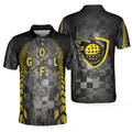 Golf Yellow Pattern Short Sleeve Polo Shirt, Checker Pattern Racing Polo Shirt, Best Golf Shirt For Men