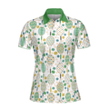 Green And Golden Tennis Pattern Short Sleeve Women Polo Shirt, Unique Golf Shirt For Ladies, Cool Gift For Tennis Lovers