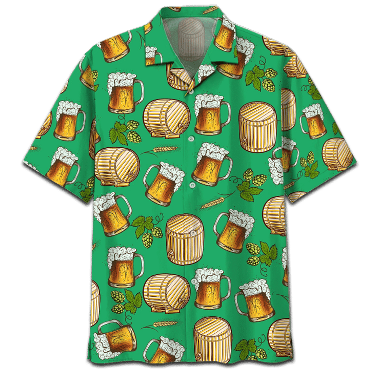 Green Theme Beer Wooden Barrel Hawaiian Shirt, Summer aloha hawaii shirt for Men women