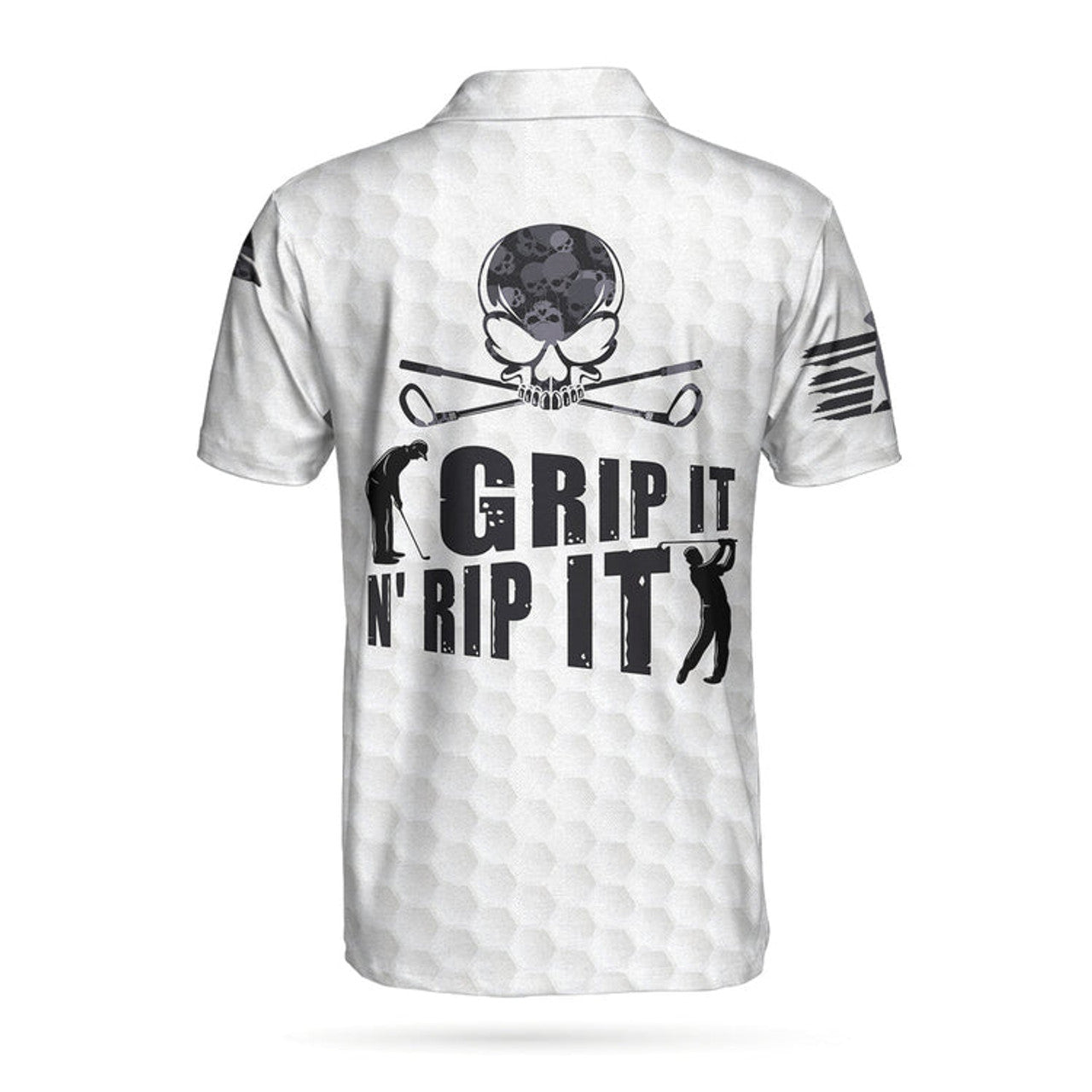 Grip It N' Rip It Golf Ball Texture Short Sleeve Polo Shirt, Ripped Skull Pattern Polo Shirt, Best Golf Shirt For Men
