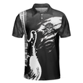 Guitar And Skull Short Sleeve Men Polo Shirt, Streetwear Polo Shirt, Black And White Guitar Shirt For Men