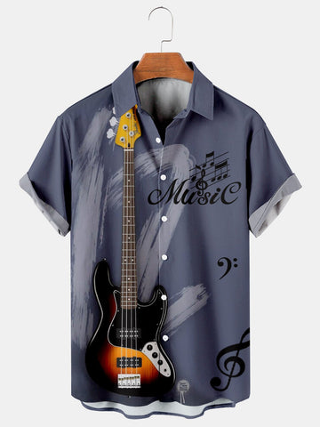 Guitar Casual Loose Men's Plus Size Short-Sleeved hawaiian Shirt