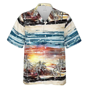 Hawaiian Camp Collar Short Sleeve Button Down Shirt Palms Art, 3D Hawaii Aloha Shirts
