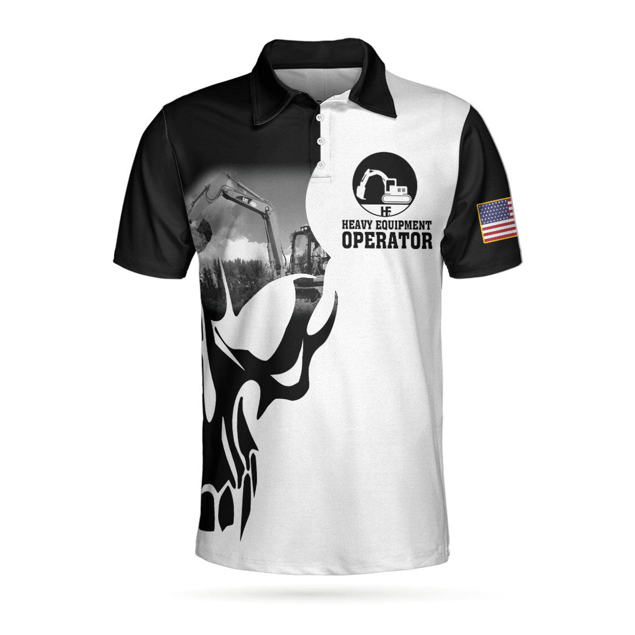 Heavy Equipment Operator Proud Skull American Flag Men Polo Shirt, If You Think You Can Do My Job Skull Heavy Equipment Operator Shirt, Best Gift For Men